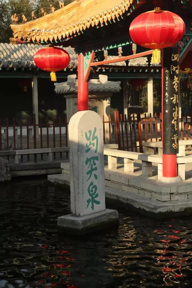在济南府“趵突泉”,泉池中有块半浸水中的石碑,上镌三个雄健大字——趵突泉,这是明代山东巡抚胡缵宗所写。